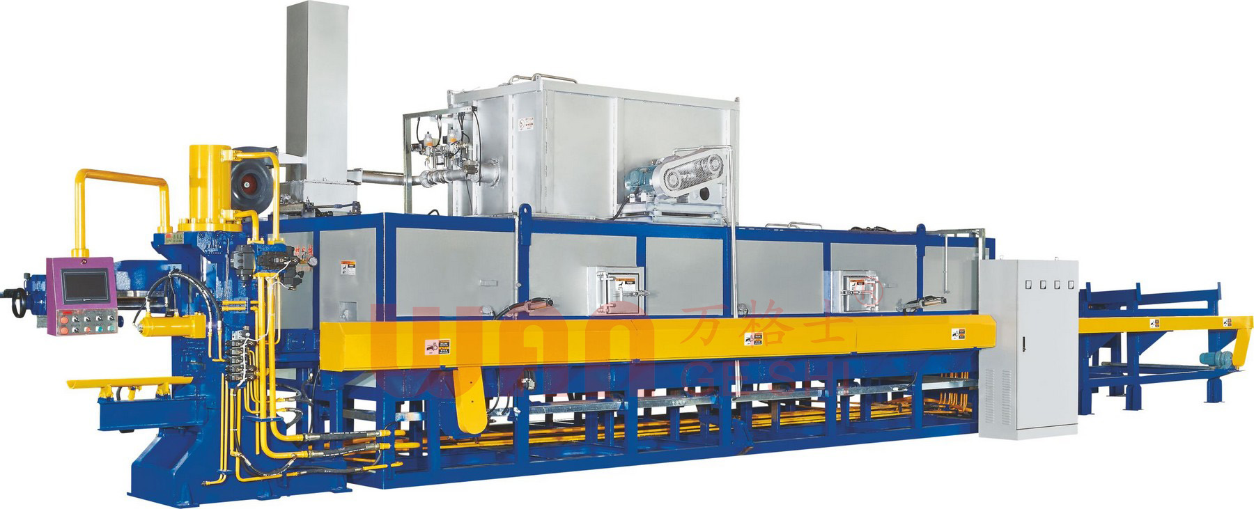 冷床是鋁擠壓生產(chǎn)線上的關(guān)鍵過渡設(shè)備,位于擠壓出口與時(shí)效爐之間。其主要作用是承接并輸送高溫型材,使其在冷卻,同時(shí)兼具定尺鋸切、矯直和儲(chǔ)料功能,是保障型材平直度和最終產(chǎn)品質(zhì)量的重要環(huán)節(jié)。