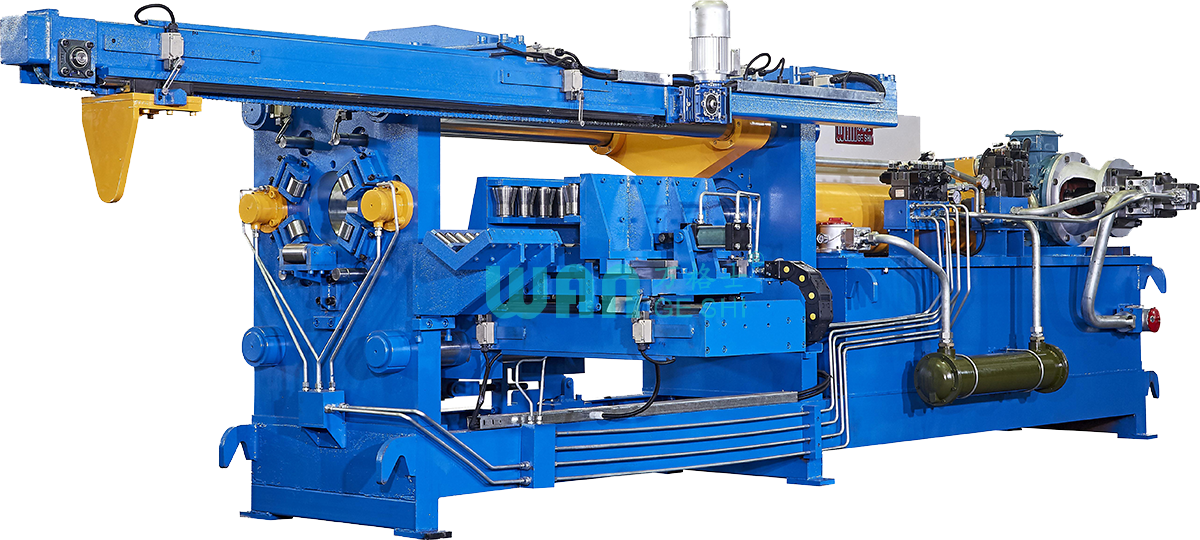 牽引機(jī)是鋁擠壓生產(chǎn)線關(guān)鍵設(shè)備,位于擠出模具后方。其核心作用是通過夾持裝置緊緊咬住擠出型材的端頭,與擠壓速度保持精確同步牽引,有效防止型材因長(zhǎng)短不一、流速差異導(dǎo)致的扭曲、拉傷或斷裂,確保型材的直線度和表面質(zhì)量,并為后續(xù)定尺鋸切提供穩(wěn)定條件。